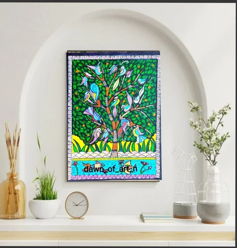 Bring home this exquisite Madhubani bird and fish painting today and experience Indian art!
